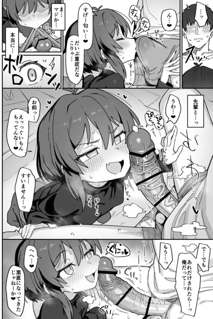 しかも、これがマンガの構図のせいで、先輩がおちんちんと喋ってる感じがとってもいいです。